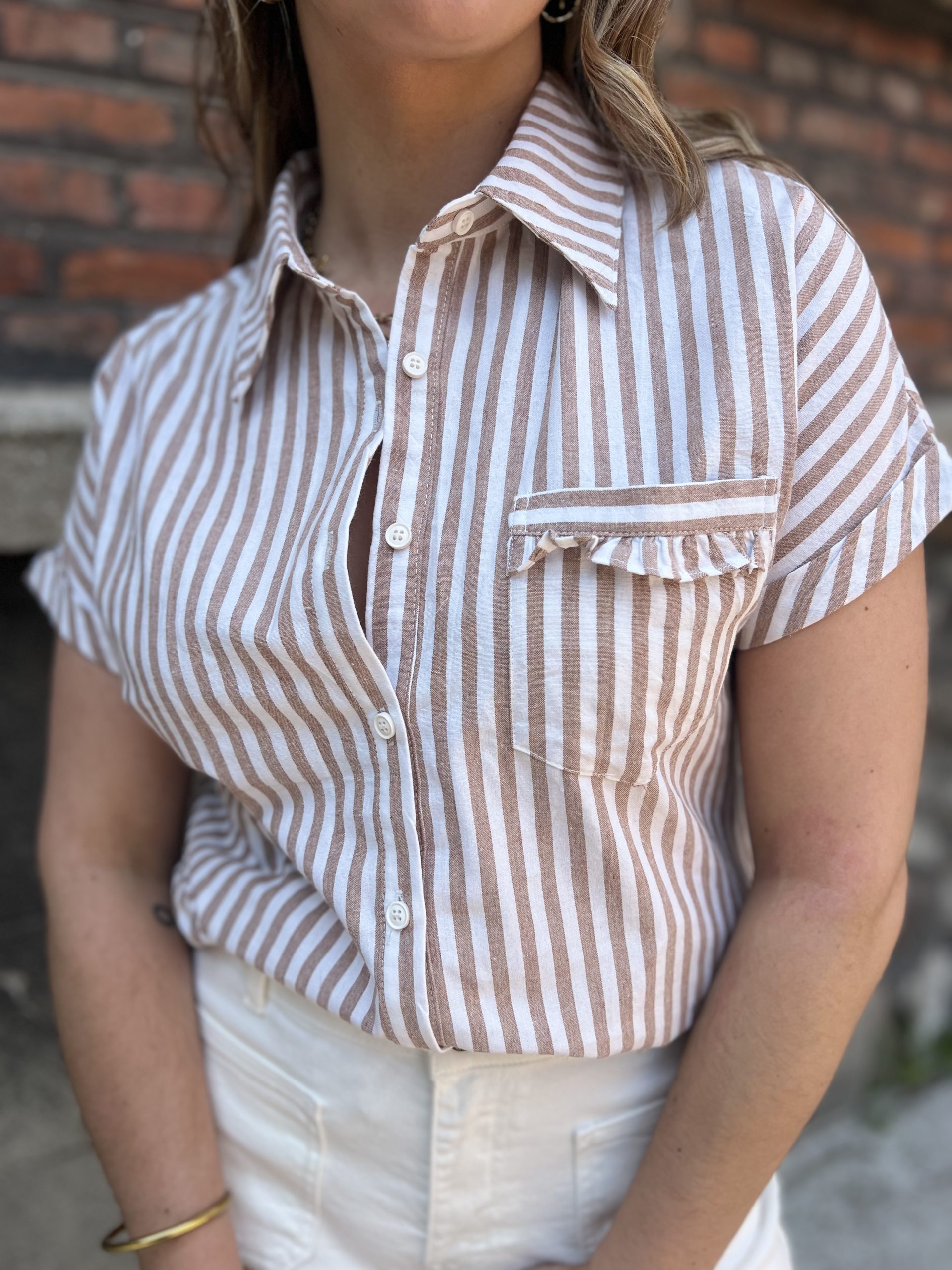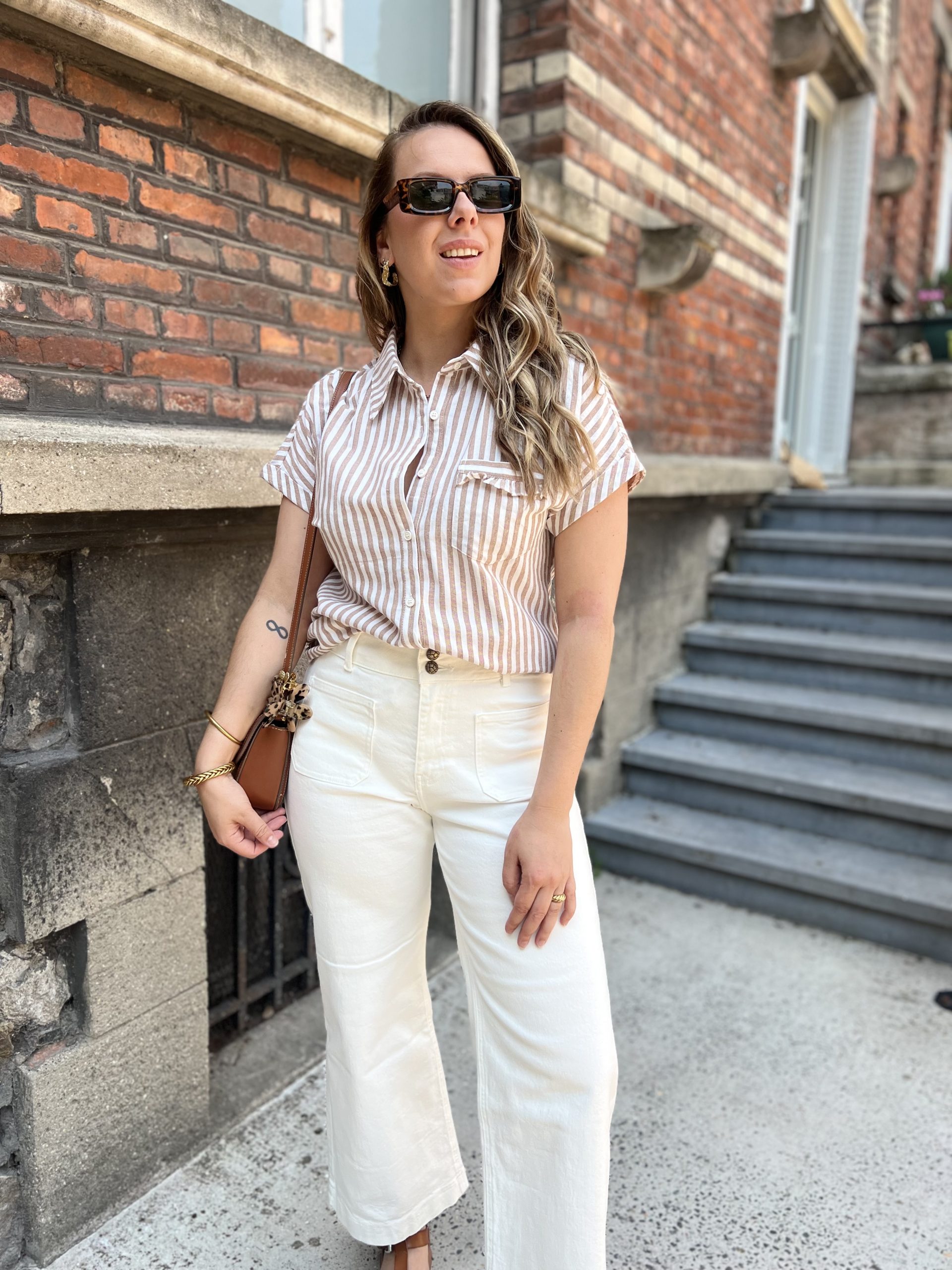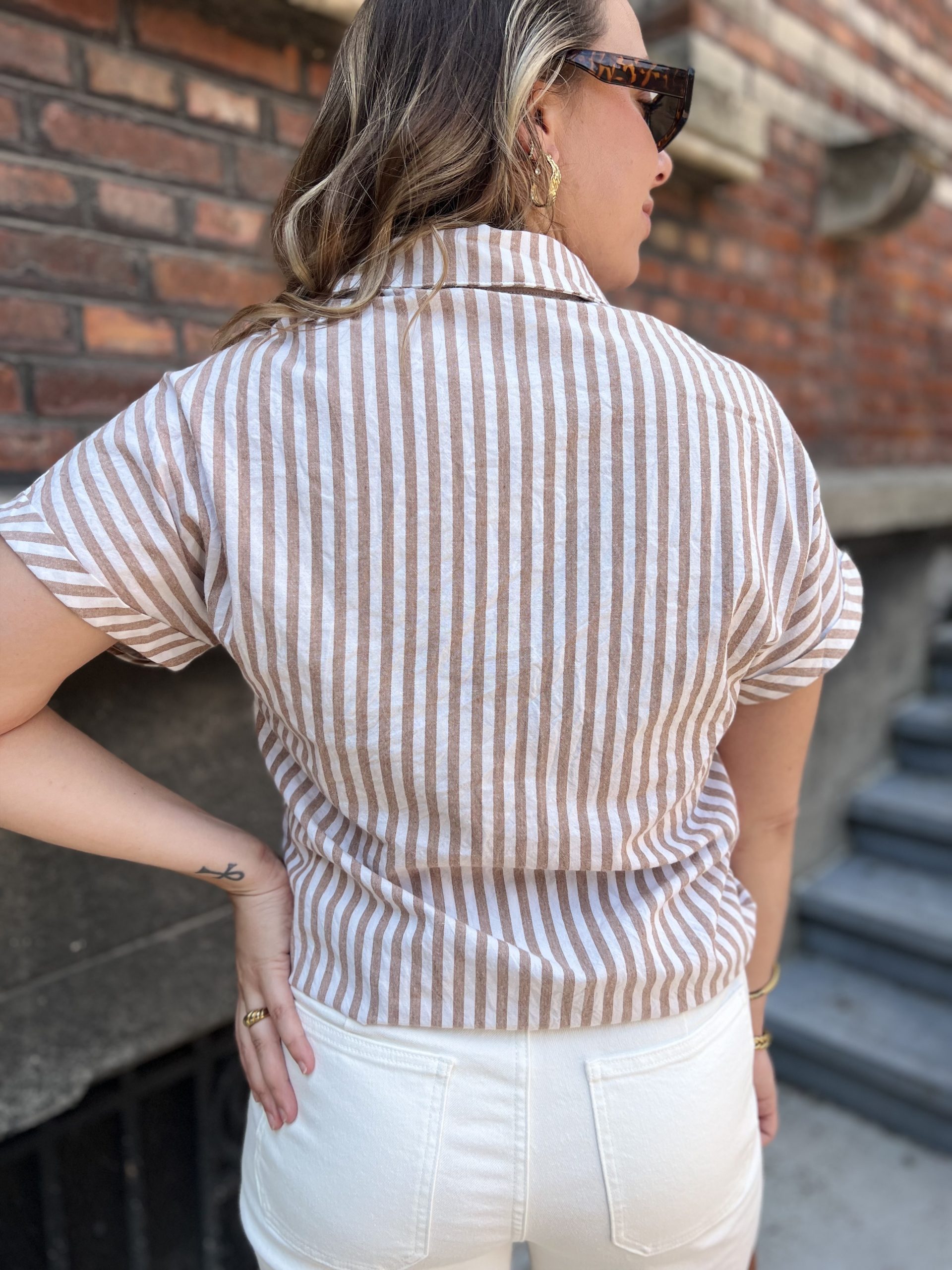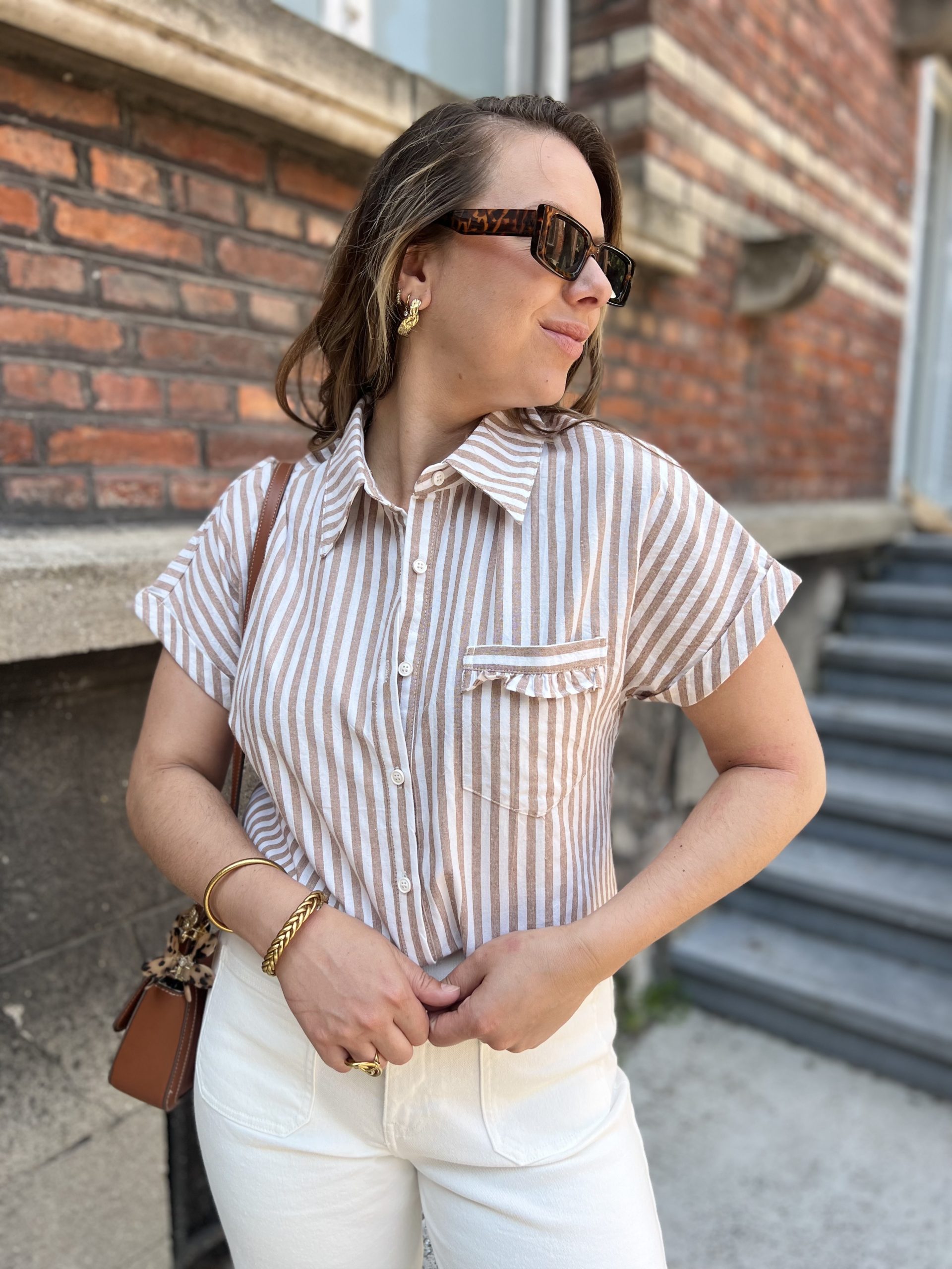 La Chemise Anaïs est une chemise rayée marron et écrue à manches courtes !