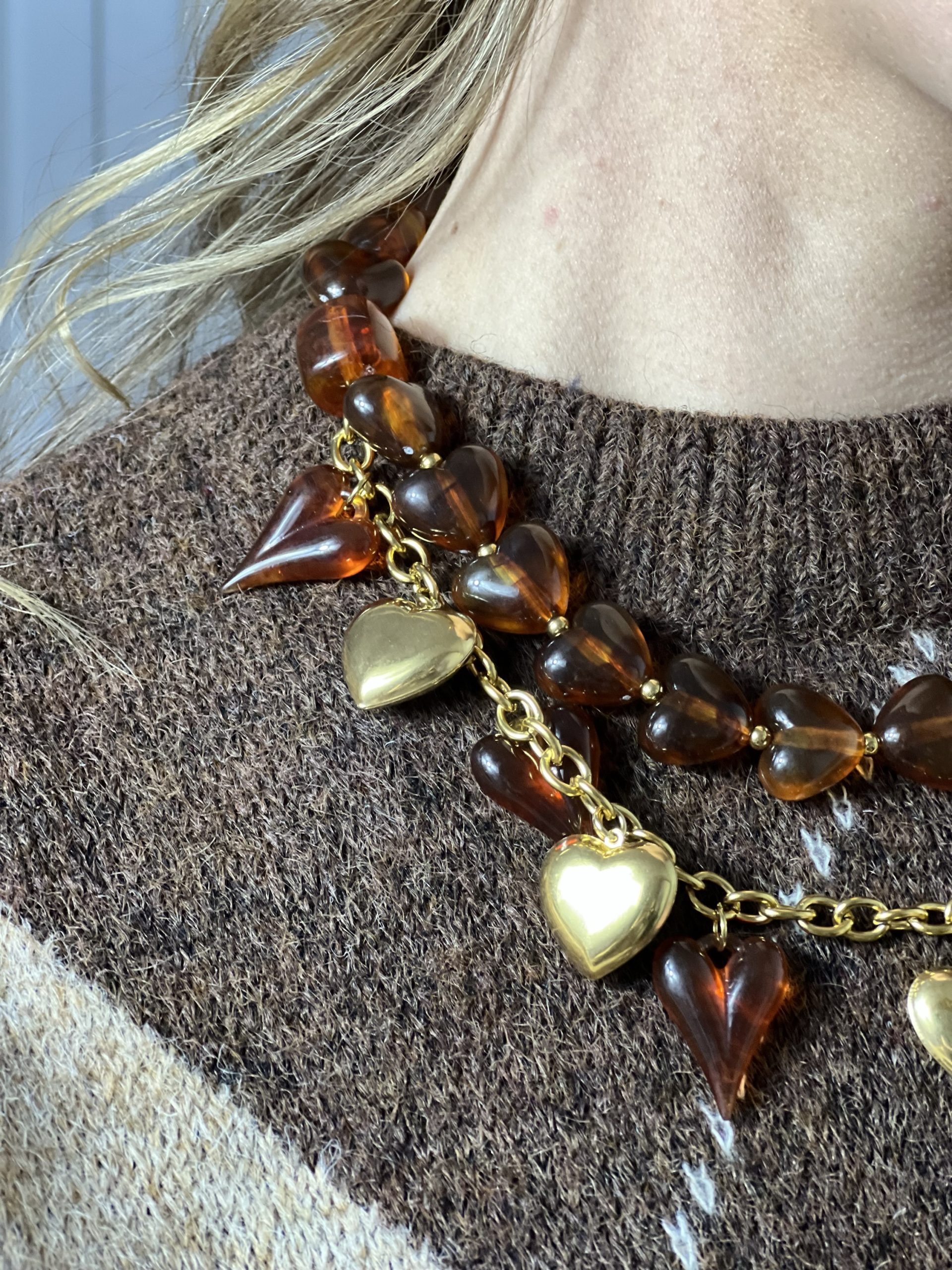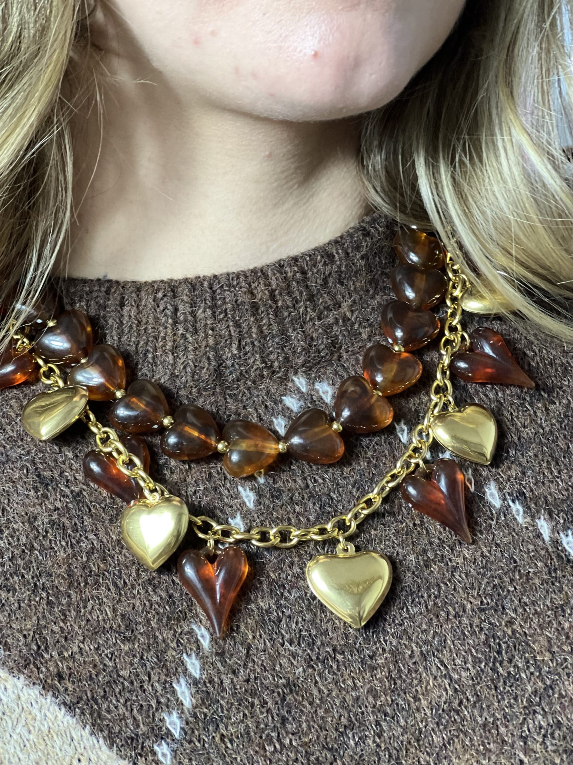 Un superbe collier cœur qui a lui seul habillera votre tenue ! Effet double collier mais un seul fermoir