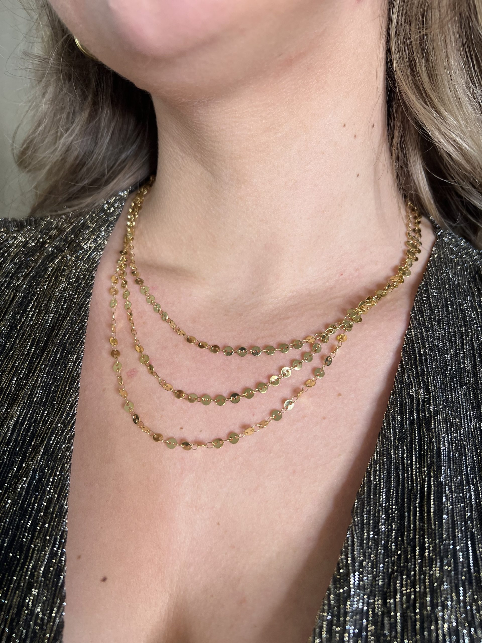 Collier triple rang doré