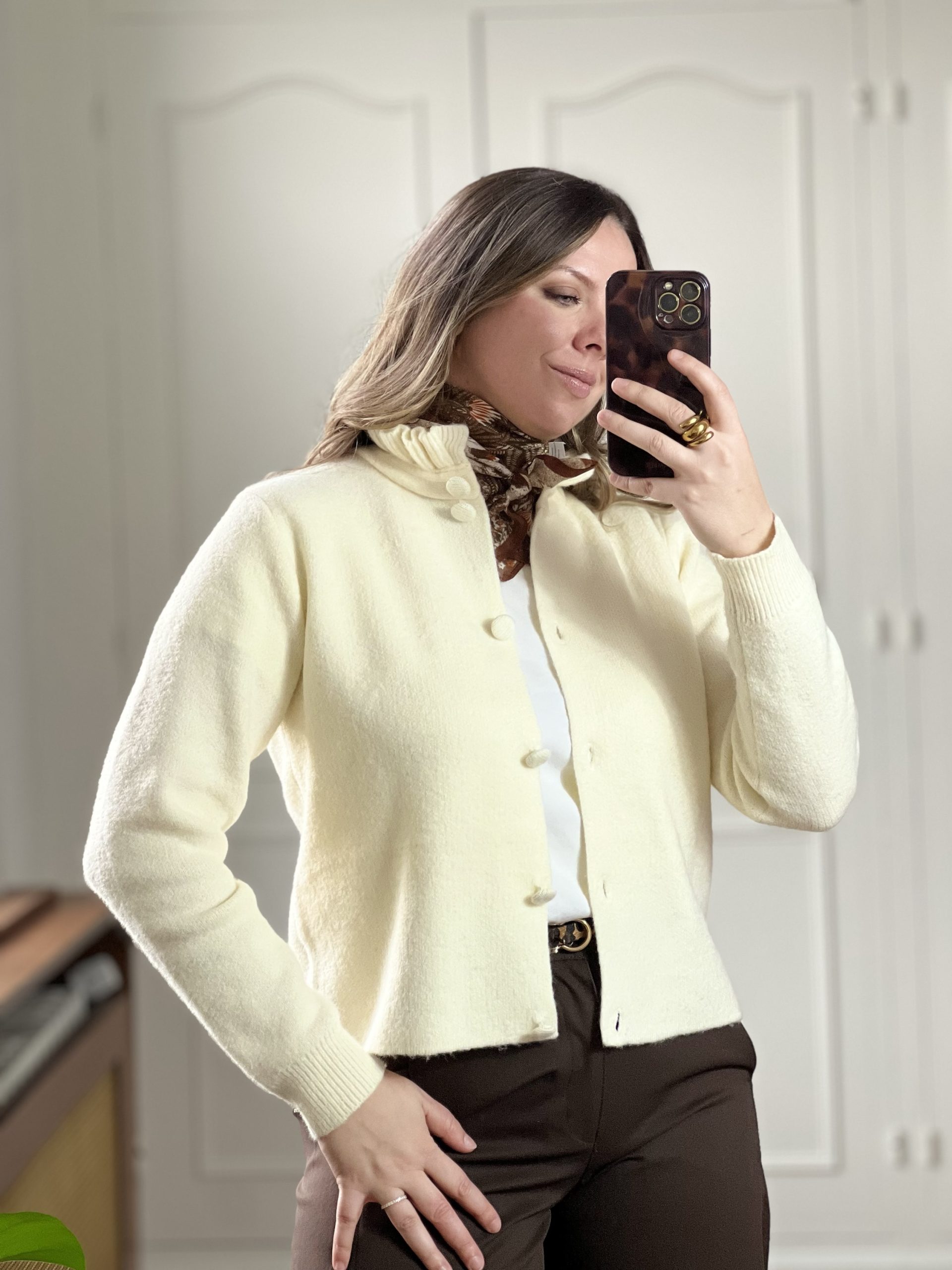 Le Gilet Madeleine est un joli gilet écru qui possède un col victorien !