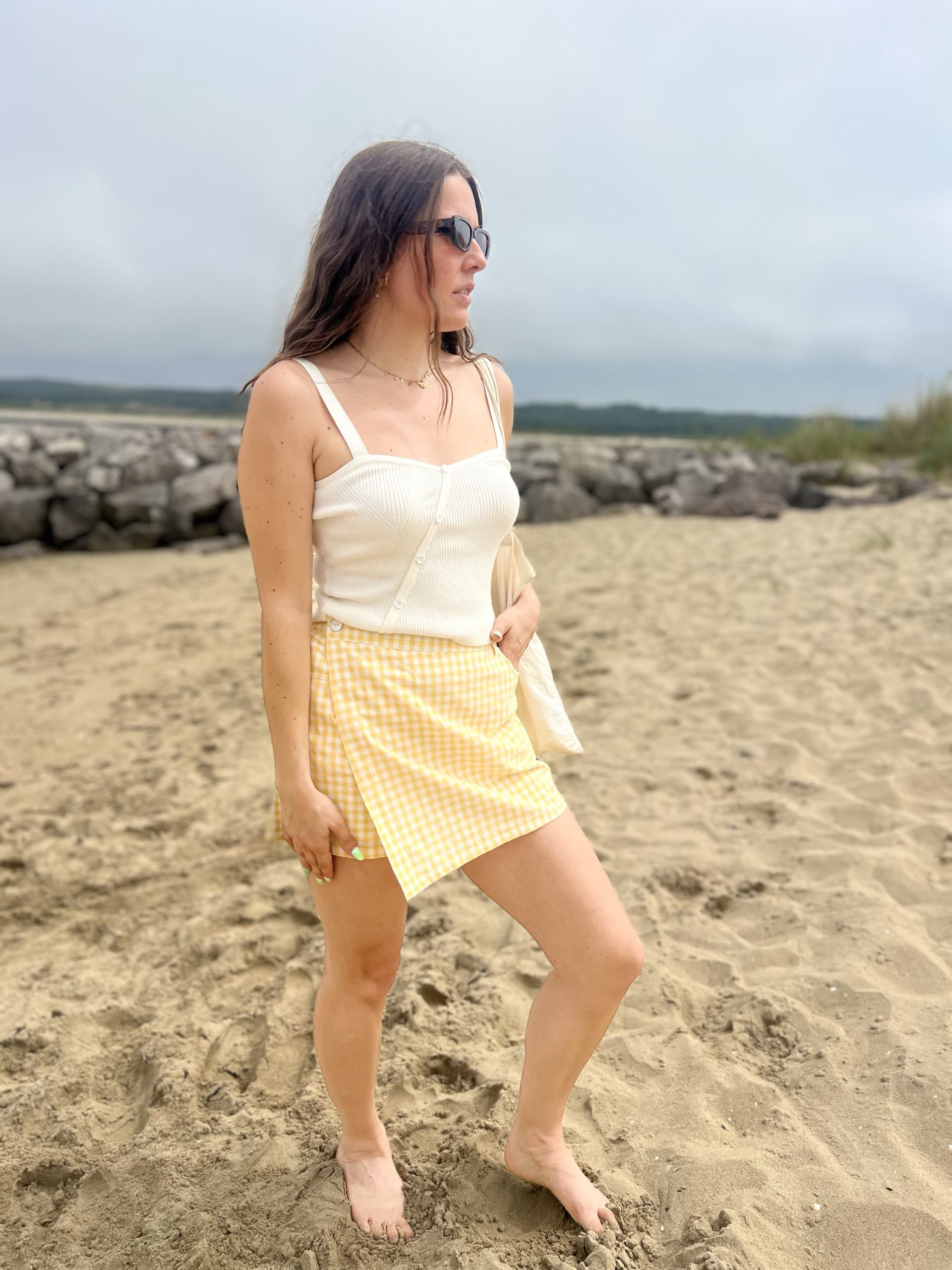 - La mannequin porte une taille M/L pour son 38 habituel et mesure 1,71 cm