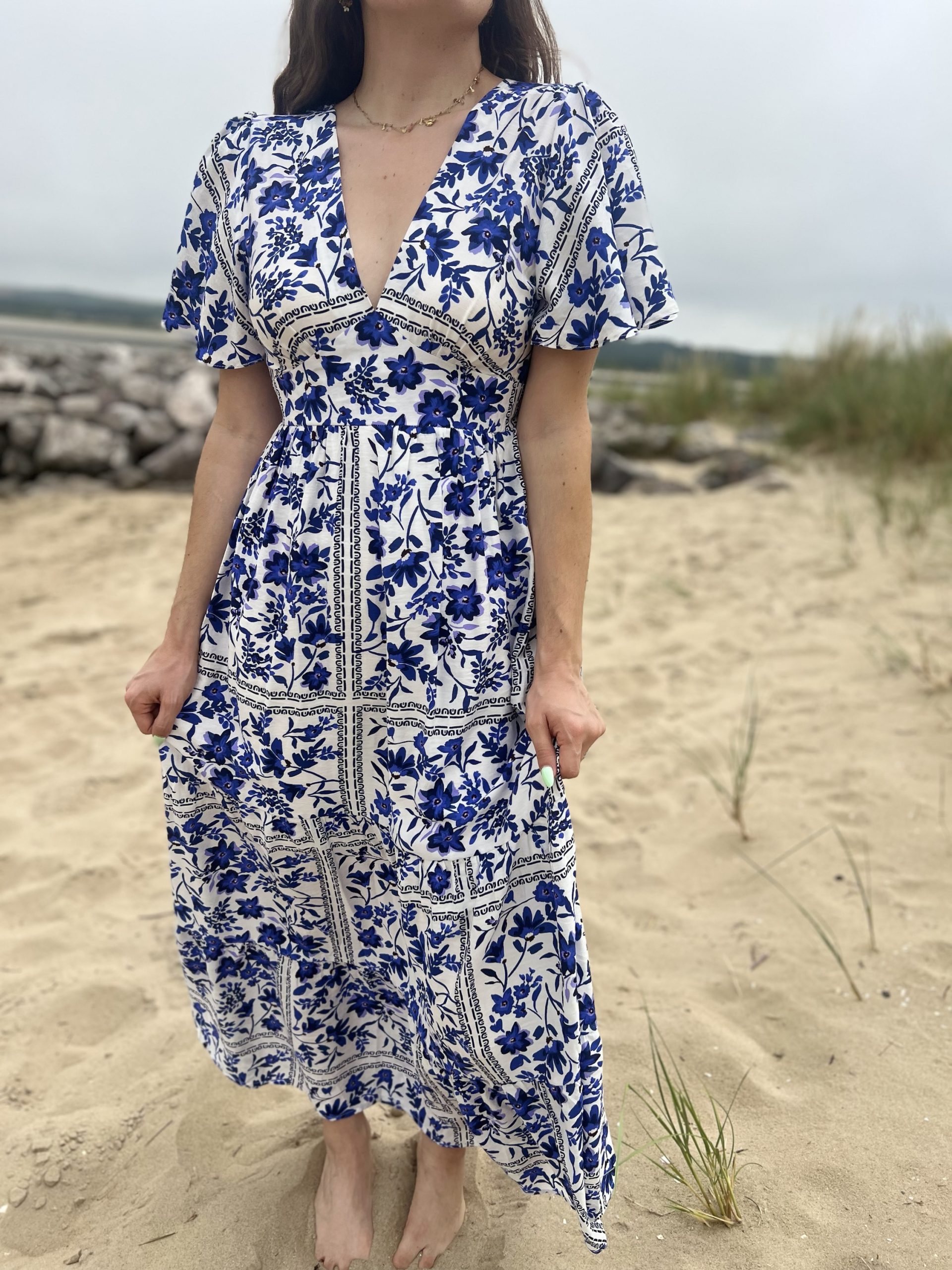 La Robe Blue est une superbe robe longue bleue et blanche avec des motifs fleuris  ! Très légère et agréable à porter !