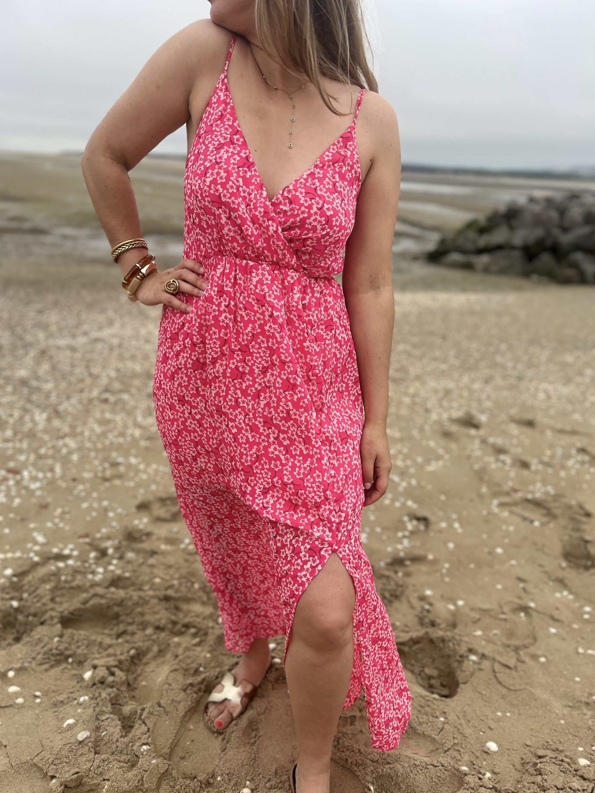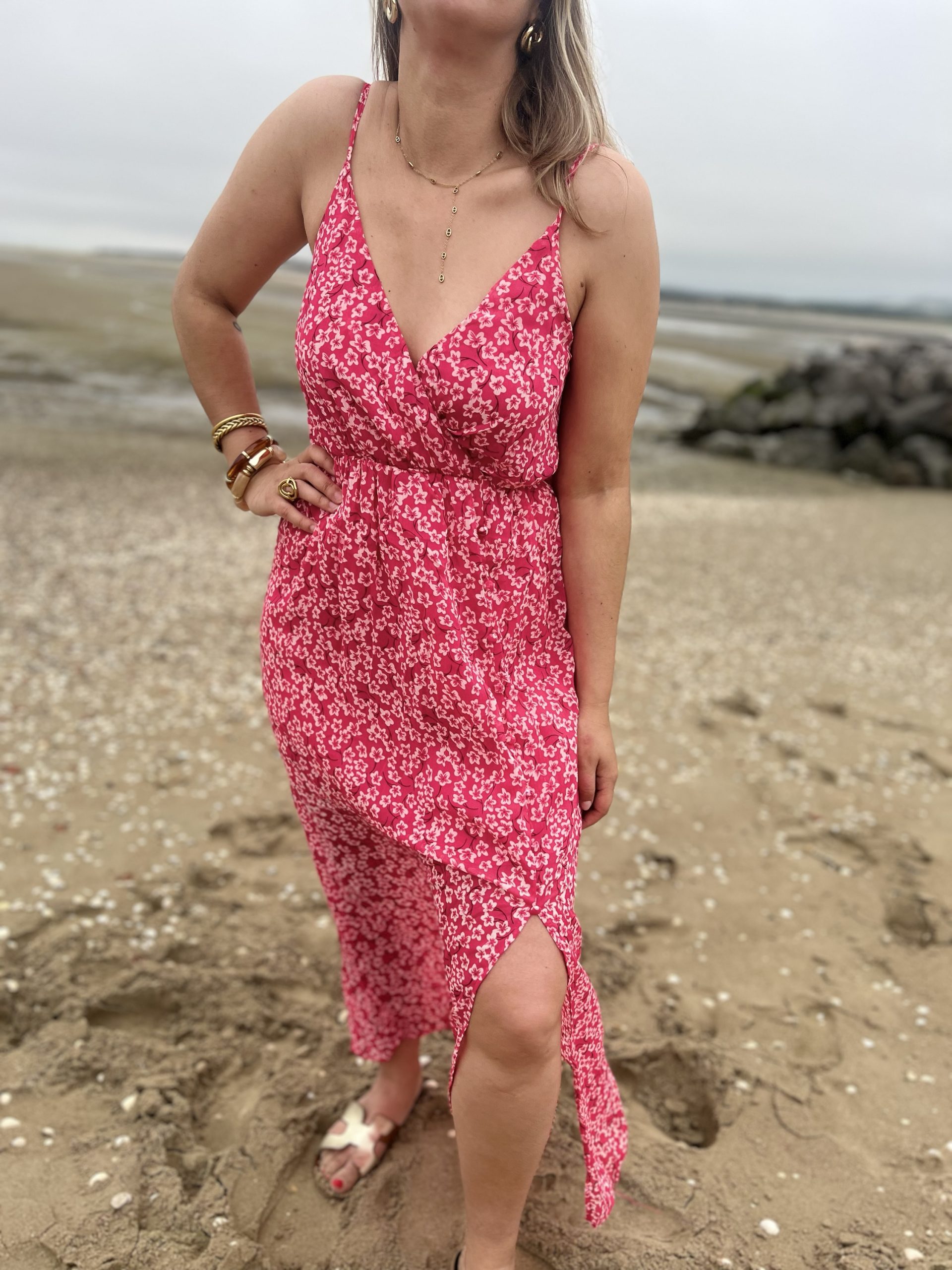 La Robe Flore est un superbe robe rose pétant avec des motifs fleurs blanches ! Très légère et agréable à porter !