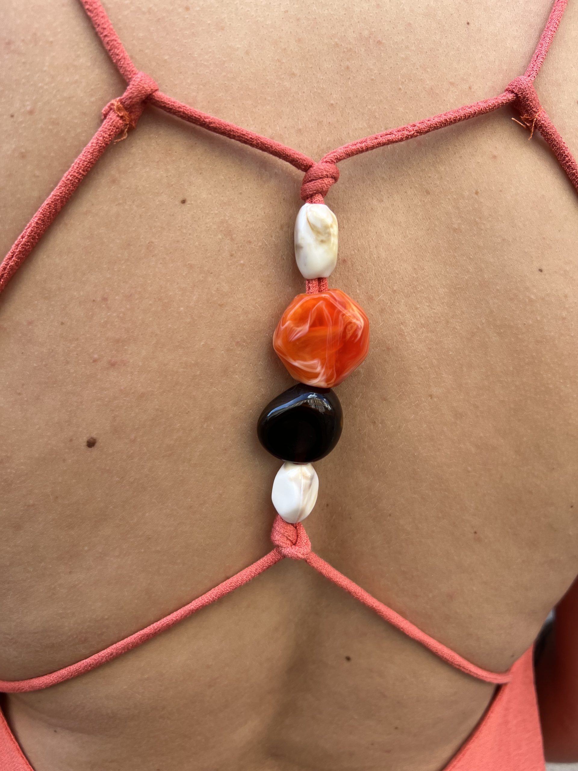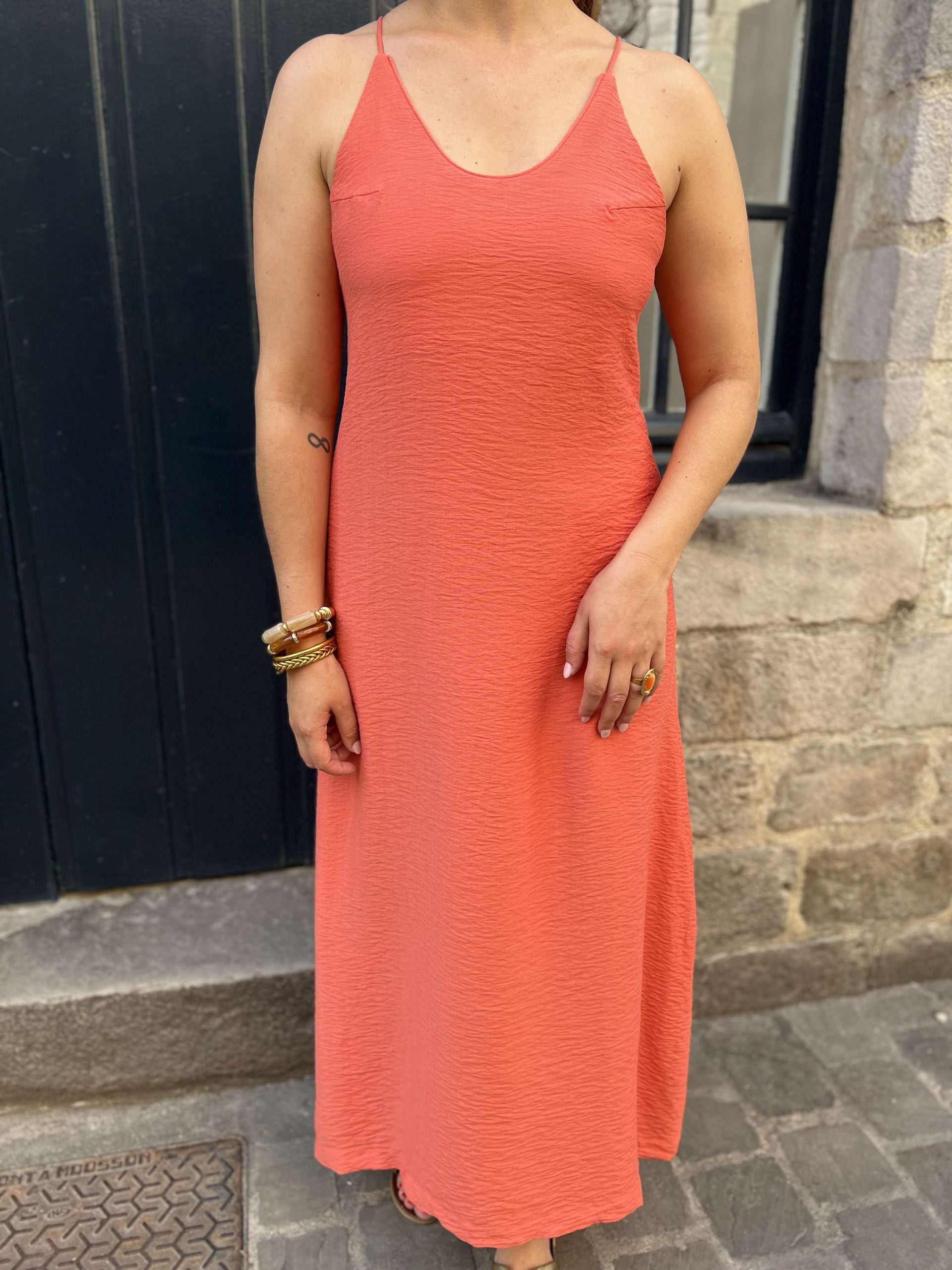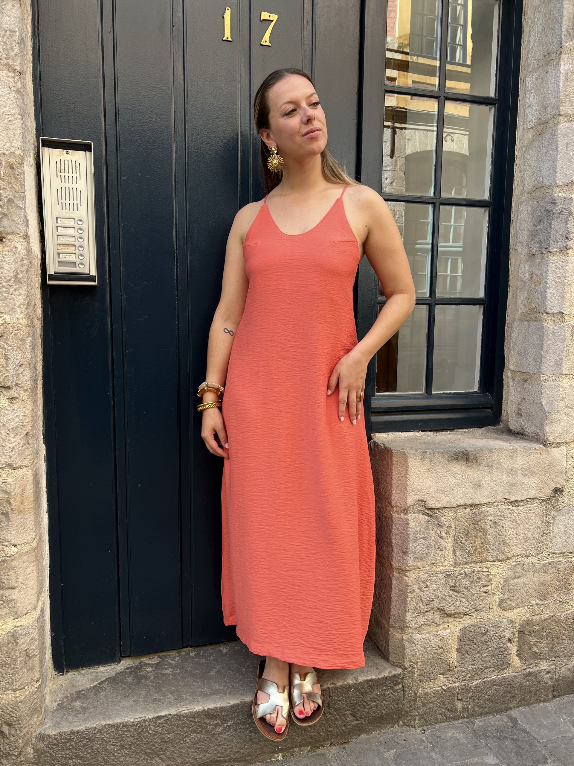 La Robe Talia est une superbe robe terracotta dos nu avec des bijoux dans le dos ! Très légère et agréable à porter !